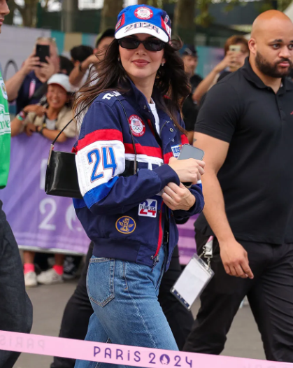 Kendall embraced the classic Polo Ralph Lauren style in Paris, giving a nod to Team USA with her choice of the Flagbearer Jacket and official Closing Ceremony cap. She displayed a simple yet polished style. Kendall Jenner’s streetstyle continues to inspire.