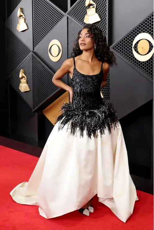 Radiant in a black and-white Chanel ball gown, Olivia balanced classic elegance with modern edge. Sequins and feathers adorned the bodice while the full skirt moved with a lithe grace as she walked, cementing her status as a style star on the rise.