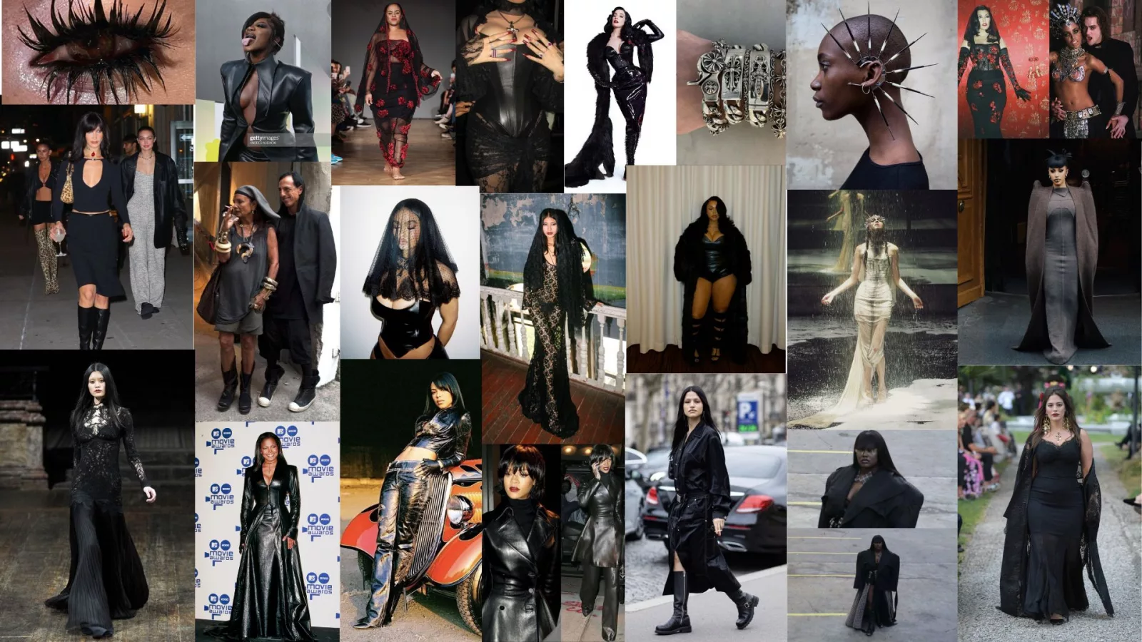 After the incessant cheer of dopamine dressing and hyper femininity, darker aesthetics will feel like a relief to many. This time around, goth isn’t about sadness or mourning; it’s about taking charge of our emotions in an increasingly curated world. As trend forecaster Mandy Lee (@oldloserinbrooklyn) noted, the rise of “dark romanticism” in fashion represents “a hunger for authenticity and emotional depth” after years of surface-level aestheticism. Pinterest’s 2024 Trend Report backs this up: searches for “eclectic goth” and “dark feminine” looks surged by over 60%, while TikTok’s #softgoth tag passed half a billion views.