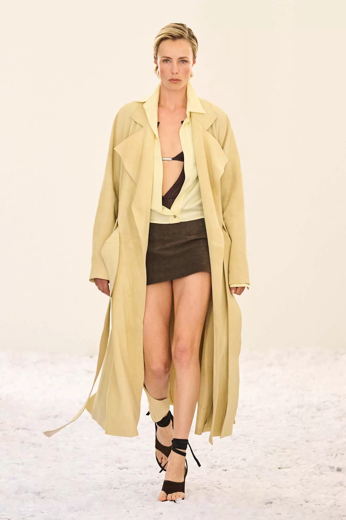 One of the biggest surprises from the collection was just how prominently pastels appeared in outerwear. Frosty mornings were met with sherbet-yellow trenches, oversized lilac coats and powder-blue shearling jackets – pieces that turned soft colour into a statement rather than an accent. A pastel coat has the power to brighten an entire winter outfit, bringing a sense of lightness to the darker months.
