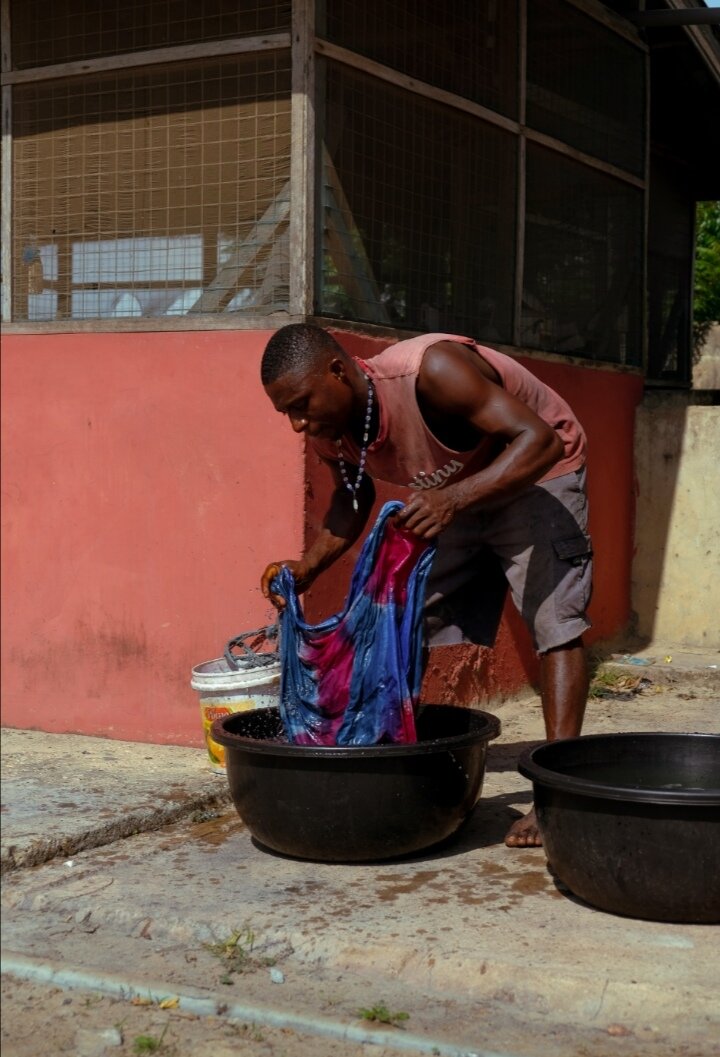 The dyes are prepared to be hand painted unto a silk linen fabric.